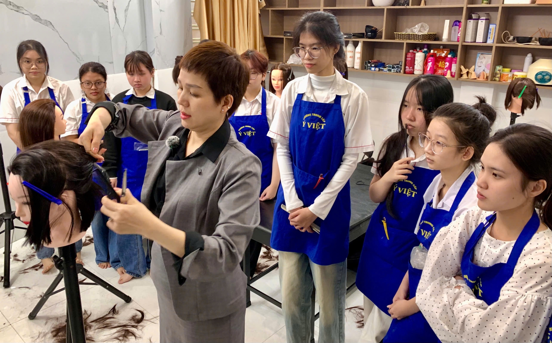 Ghé qua một buổi học nghề cắt tóc tại Trường Trung cấp Ý Việt