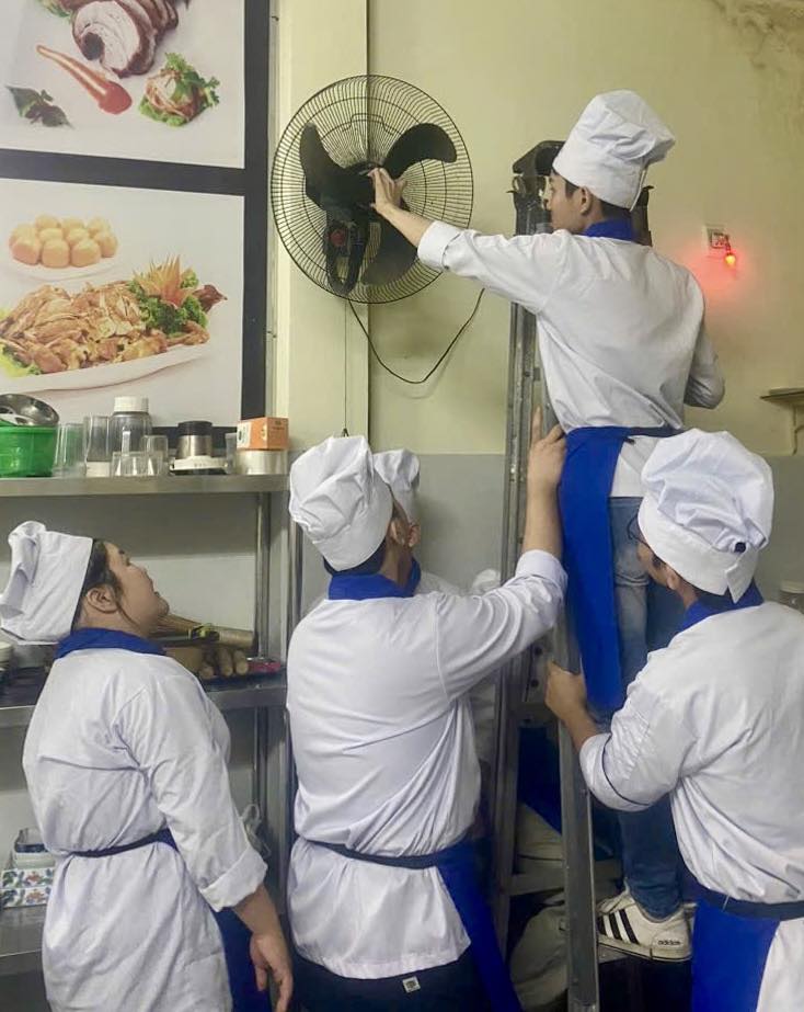 K24 ngành Kỹ thuật Chế biến Món ăn tổng vệ sinh toàn bộ khu vực bếp