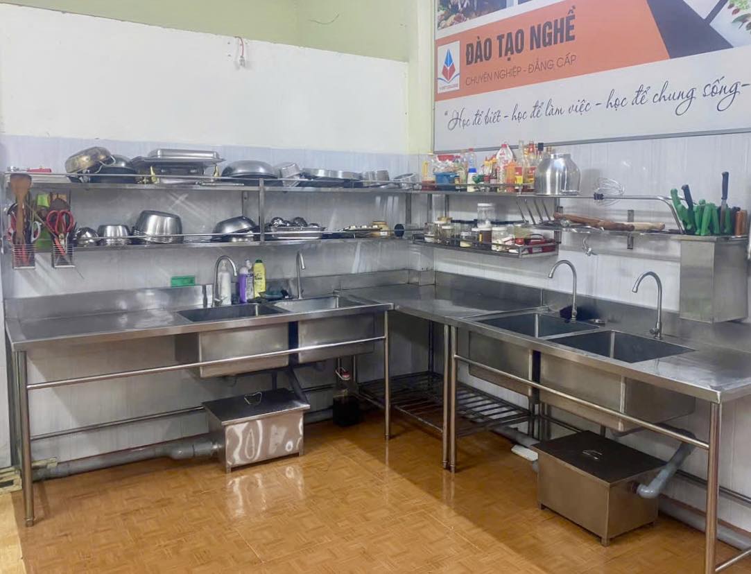 Trong buổi vệ sinh định kỳ, học sinh đã chủ động lau chùi khu vực bếp nấu, sắp xếp lại dụng cụ và vệ sinh toàn bộ sàn bếp. Những công việc tưởng chừng đơn giản nhưng lại thể hiện rõ tinh thần trách nhiệm, ý thức kỷ luật và sự nghiêm túc trong quá trình học nghề. Đây cũng là kỹ năng bắt buộc đối với bất kỳ đầu bếp chuyên nghiệp nào trong tương lai.