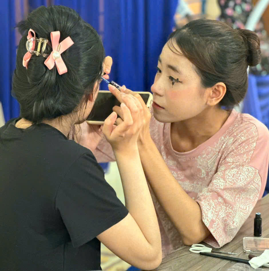 Với sự hướng dẫn trực tiếp từ đội ngũ giảng viên giàu kinh nghiệm trong lĩnh vực làm đẹp, học viên được tiếp cận giáo trình chuyên sâu, cập nhật xu hướng và kỹ thuật trang điểm tiên tiến. Các nội dung học bao gồm: trang điểm sân khấu, hóa trang nghệ thuật, tạo hình nhân vật, phối màu – tạo khối, làm việc với ánh sáng và phụ kiện. Học viên còn được thực hành thường xuyên qua các buổi workshop, dự án thực tế và trình diễn chuyên đề, từ đó nâng cao kỹ năng và sự tự tin.