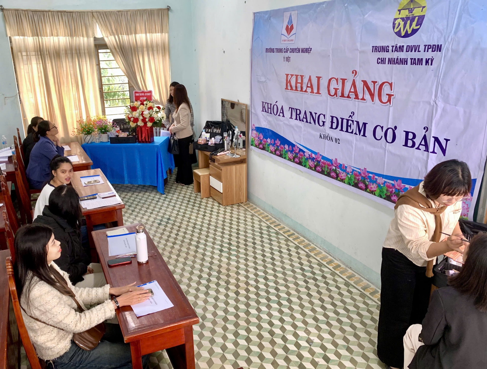 Trường Trung cấp Ý Việt phối hợp cùng Trung tâm Dịch vụ Việc làm TP Đà Nẵng – Chi nhánh Tam Kỳ đã khai giảng lớp Trang điểm cơ bản khóa 2 dành cho các học viên đang được hưởng trợ cấp thất nghiệp. Đặc biệt, khóa học trang điểm lần này tiếp tục được hỗ trợ hoàn toàn học phí, giúp nhiều chị em có cơ hội tiếp cận chương trình đào tạo một cách dễ dàng và tiết kiệm.