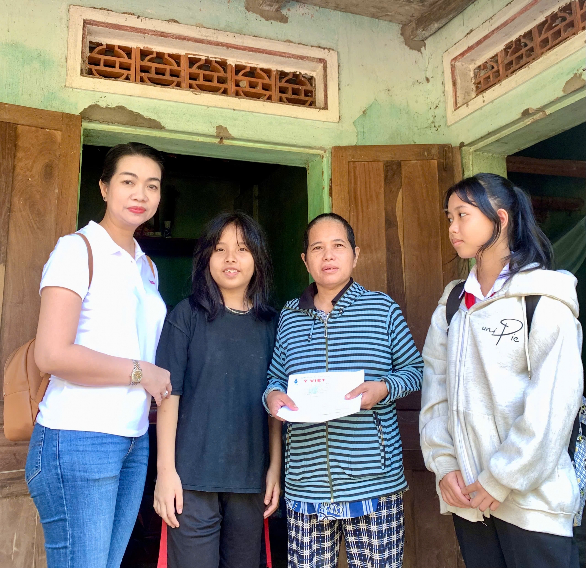 Mỗi phần quà bao gồm ba lô đi học, áo trắng học sinh, giày dép, vở và dụng cụ học tập, khăn quàng đỏ, mùng, chăn mỏng, gạo, bánh, nui khô, mắm nêm, xì dầu và cá hộp. Đây đều là những nhu yếu phẩm thiết thực, giúp các em phần nào vơi bớt lo toan trong cuộc sống và có thêm điều kiện tiếp tục đến trường. Bên cạnh đó, nhà trường còn trao tặng 3 triệu đồng đến em My – một học sinh có hoàn cảnh đặc biệt khó khăn tại địa phương – nhằm hỗ trợ em vượt qua giai đoạn nhiều thiếu thốn. Mỗi món quà là sự sẻ chia chân thành từ tập thể Trường Trung cấp Ý Việt, gửi gắm niềm hy vọng rằng các em sẽ thêm động lực học tập, nuôi dưỡng ước mơ và vững vàng hơn trên hành trình phía trước.