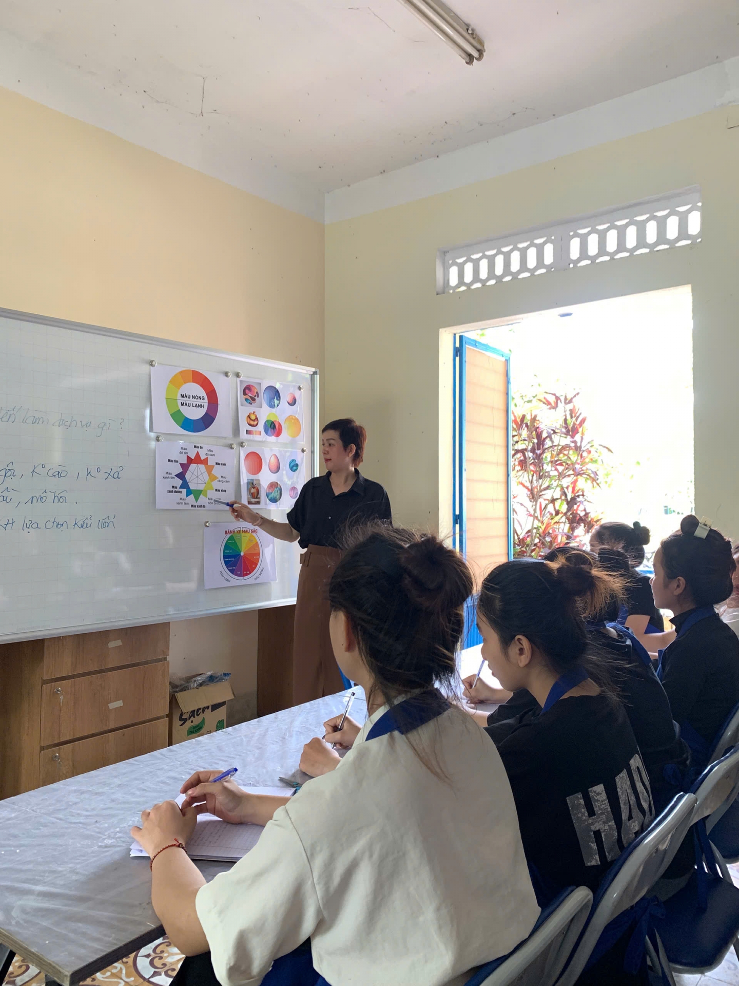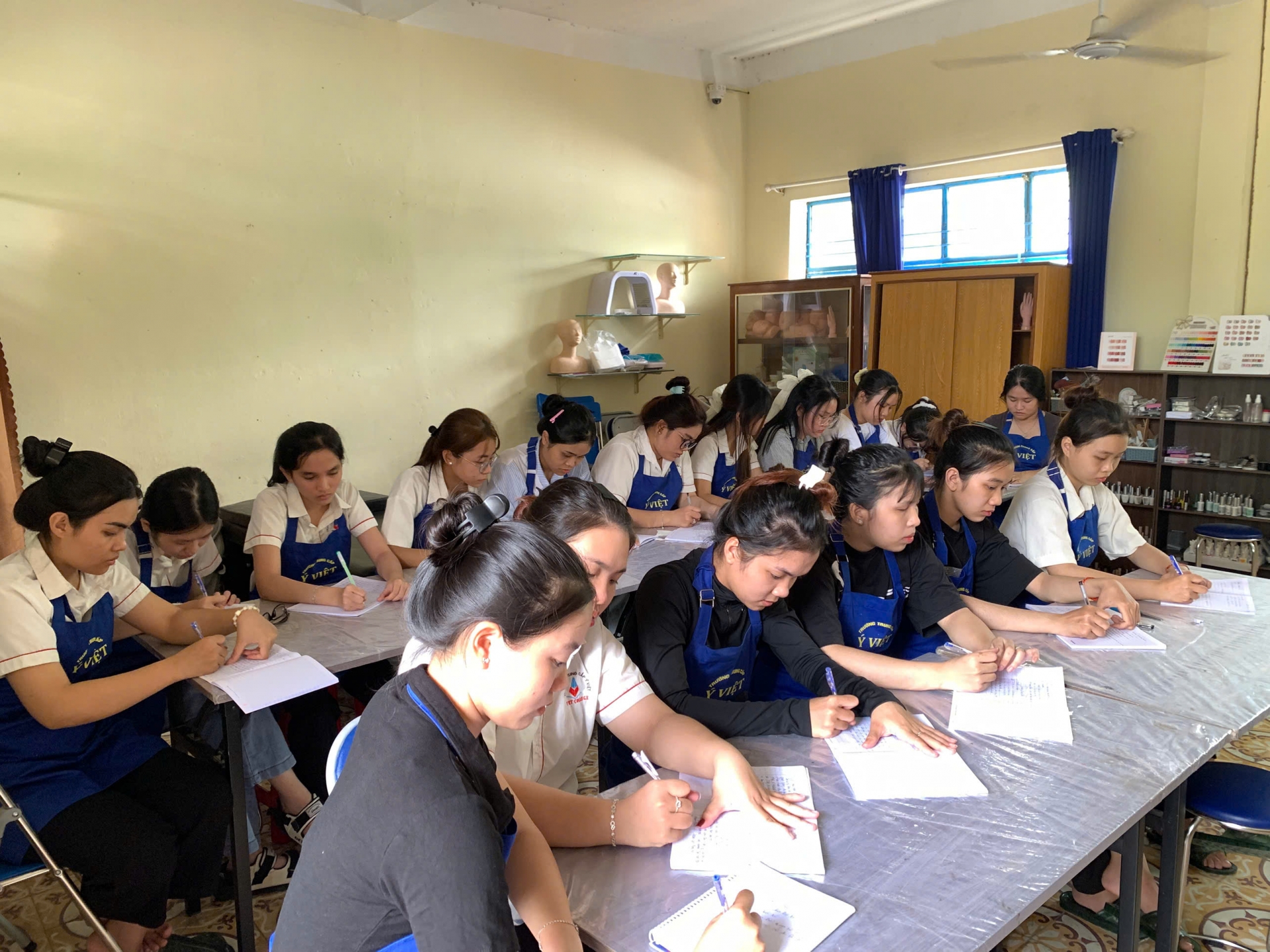 Kỹ năng toàn diện: Ngoài uốn tóc, sinh viên còn được học cắt, nhuộm, phục hồi tóc và các xu hướng thời trang tóc mới nhất.