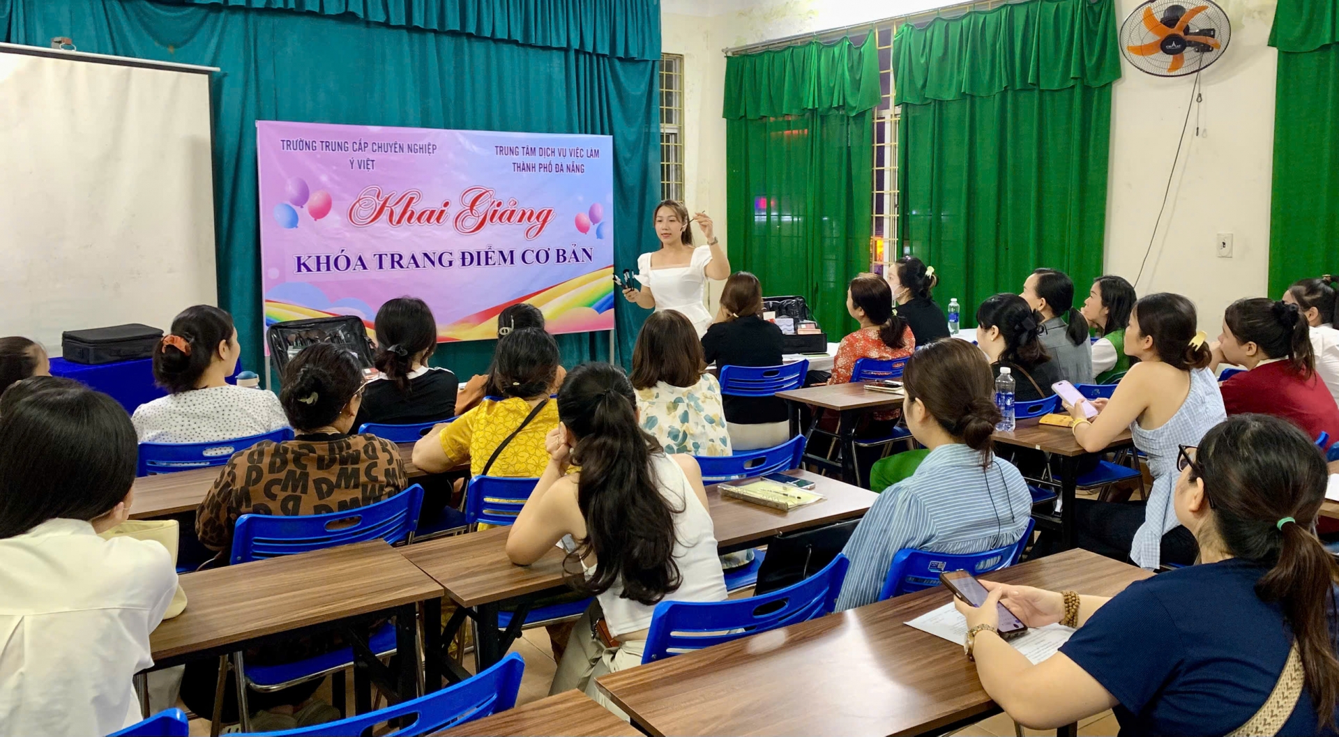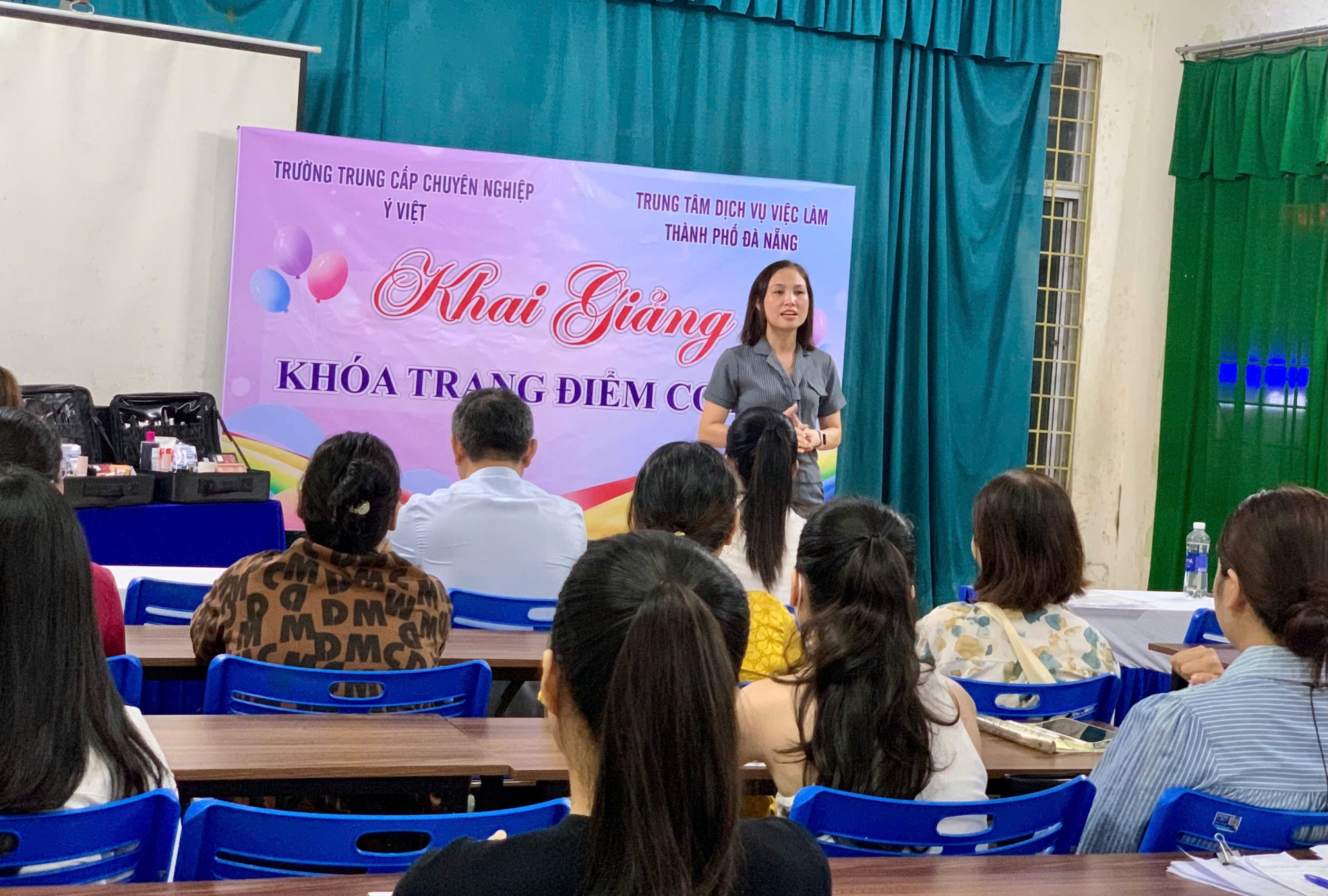 Trường Trung cấp Ý Việt phối hợp cùng Trung tâm Dịch vụ việc làm Đà Nẵng chính thức khai giảng khóa học Trang điểm cơ bản hoàn toàn miễn phí. Đây là cơ hội thiết thực để những người yêu thích làm đẹp có thể tiếp cận chương trình đào tạo bài bản, thực hành trong môi trường chuyên nghiệp mà không phải lo về học phí.