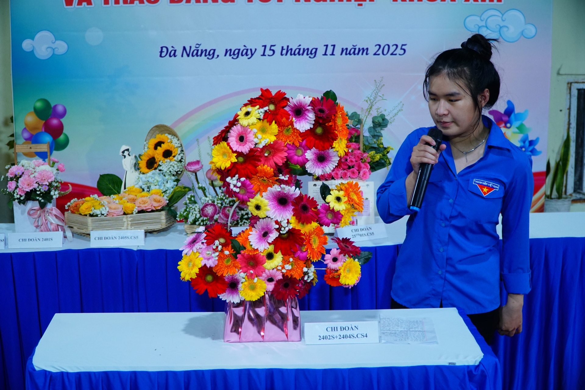 Cuộc thi cắm hoa diễn ra trong không khí ấm áp, vẹn tròn cảm xúc. Những nụ cười, ánh mắt tự hào của người thực hiện và lời khen ngợi từ thầy cô đã tạo nên nhiều khoảnh khắc xúc động. Sân trường ngập tràn sắc màu của hoa, trở thành phông nền lý tưởng để lưu giữ những hình ảnh kỷ niệm khó quên.